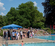 Am Ende waren es wohl mehrere hundert Menschen, welche bei Party-Stimmung die laue Sommernacht im Wasser oder auch nur neben dem Becken genossen.